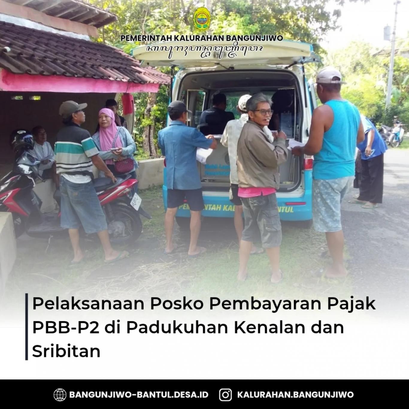 Pada hari minggu (4/05/2025) telah dilaksanakan kegiatan posko pembayaran pajak PBB P-2 di Padukuhan Kenalan dan Padukuhan Sribitan. Kegiatan posko PBB-P2 ini dilaksanakan untuk mendekatkan pelayanan kepada wajib pajak, harapannya capaian pembayaran pajak dapat maksimal. Kegiatan posko pembayaran PBB ini nantinya akan keliling ke setiap padukuhan di Kalurahan Bangunjiwo. Masyarakat dapat melihat jadwal masing-masing padukuhan di postingan yang kami sematkan.