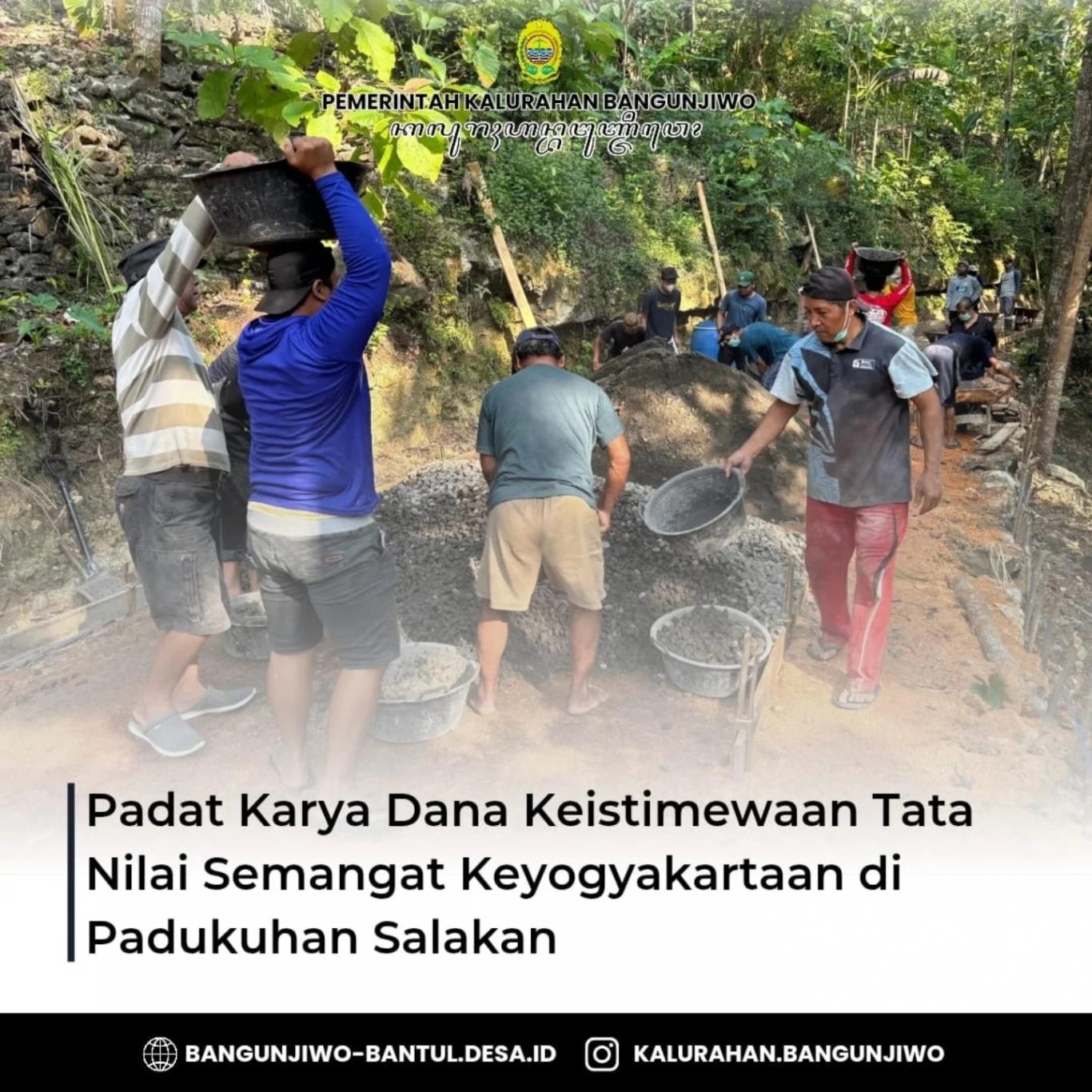Senin 5 Mei 2025 Kegiatan Padat Karya Penerapan Tata Nilai Semangat Keyogyakartaan TA 2025 di Kalurahan Bangunjiwo telah dimulai. Program ini didukung dengan Dana Keistimewaan melalui Dinas Tenaga Kerja dan Transmigrasi DIY.