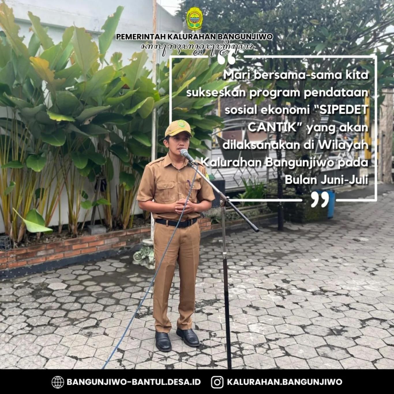 Dalam apel disampaikan terkait pelaksanaan program SIPEDET CANTIK (Sistem Pendataan Desa Cinta Statistik) yang akan mulai berjalan, dimulai dengan Bimtek bagi petugas pendata selama 2 hari yakni tanggal 26 dan 27 Mei 2025.