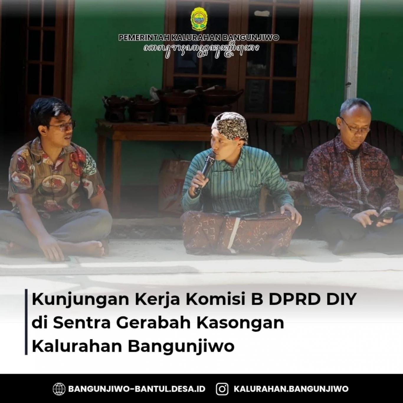 Kamis 5/6 Pemerintah Kalurahan Bangunjiwo menerima kunjungan kerja Komisi B DPRD DIY di Sentra Kerajinan Gerabah Kasongan Bangunjiwo. Ketua Komisi B DPRD DIY Ibu Andriana Wulandari, S.E.,M.IP beserta Wakil Ketua Komisi B Bapak Dr. Danang Wahyu Broto, S.E.,M.Si. dan anggota mengajak serta Kepala Dinas Perindustrian dan Perdagangan DIY dan Kepala Dinas Pariwisata DIY.
