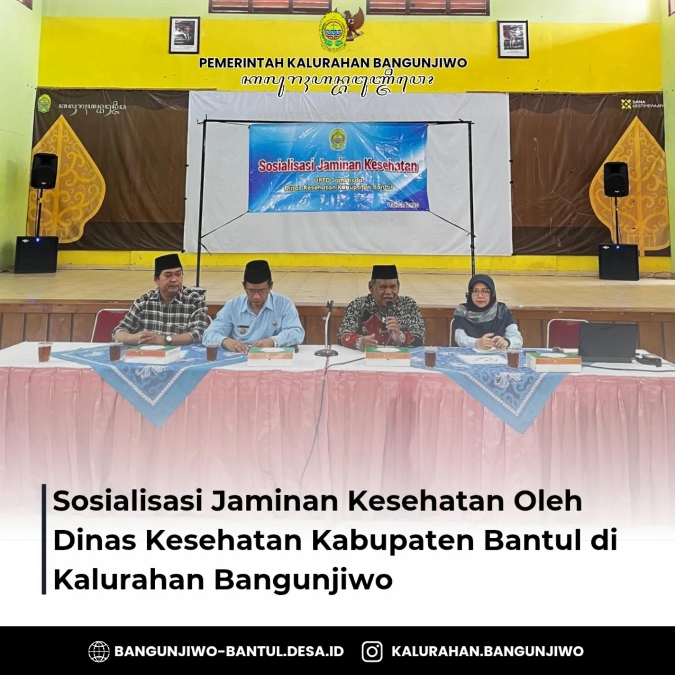 Pada hari Selasa (24/06/2025) telah dilaksanakan kegiatan sosialisasi jaminan kesehatan oleh Dinas Kesehatan Kabupaten Bantul. Turut hadir dalam sosialisasi ini DPRD Kabupaten Bantul, Bapak Sapto Priyono, M.M., Lurah Bangunjiwo, Ketua Bamuskal Bangunjiwo, Dukuh dan Tokoh Masyarakat Kalurahan Bangunjiwo. Dalam kegiatan ini disampaikan mengenai petunjuk teknis mengenai implementasi jaminan kesehatan di Kabupaten Bantul.