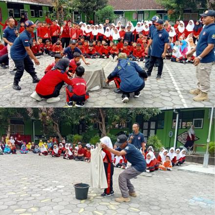 Redkar Kalurahan Bangunjiwo kenalkan simulasi kebakaran pada siswa SDN Sribitan