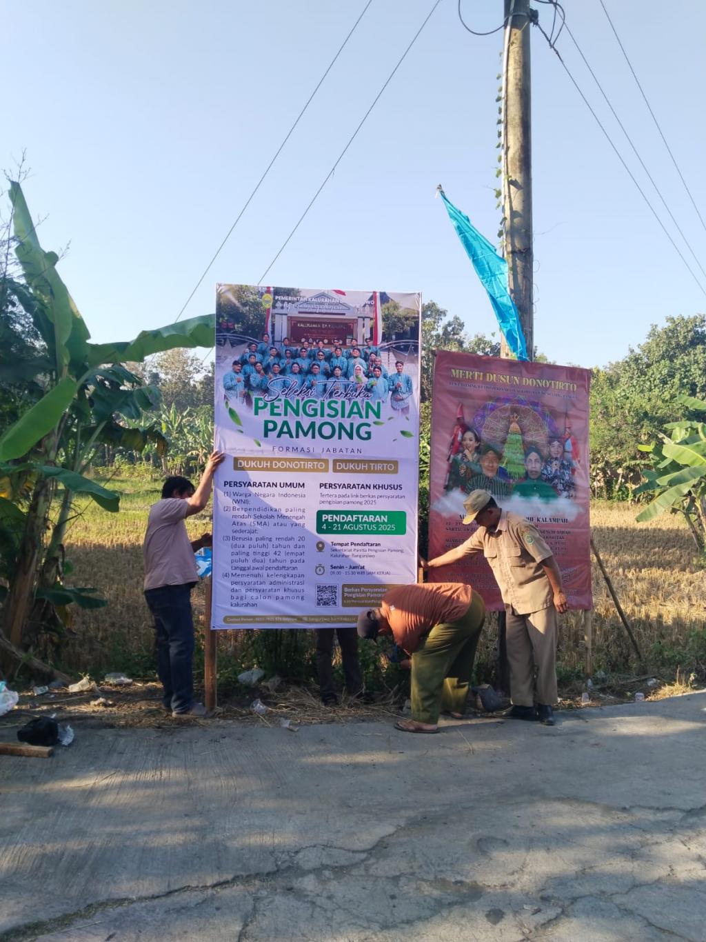 Untuk pemasangan baliho dilaksanakam di perempatan Bangunjiwo, wilayah Padukuhan Donotirto dan Padukuhan Tirto.