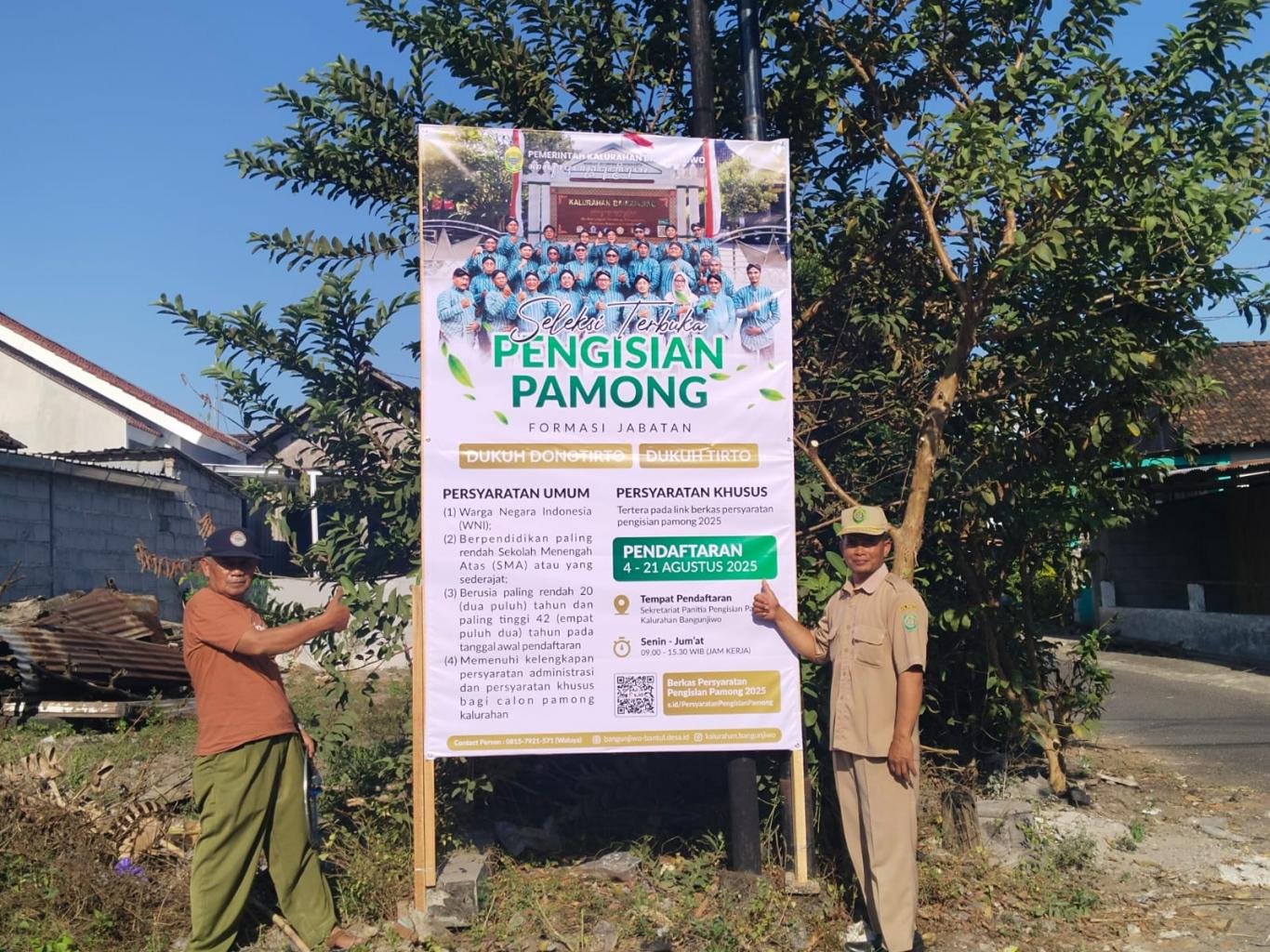 Pemasangan Papan Pengumuman Lowongan Pamong Kalurahan Bangunjiwo Tahun 2025