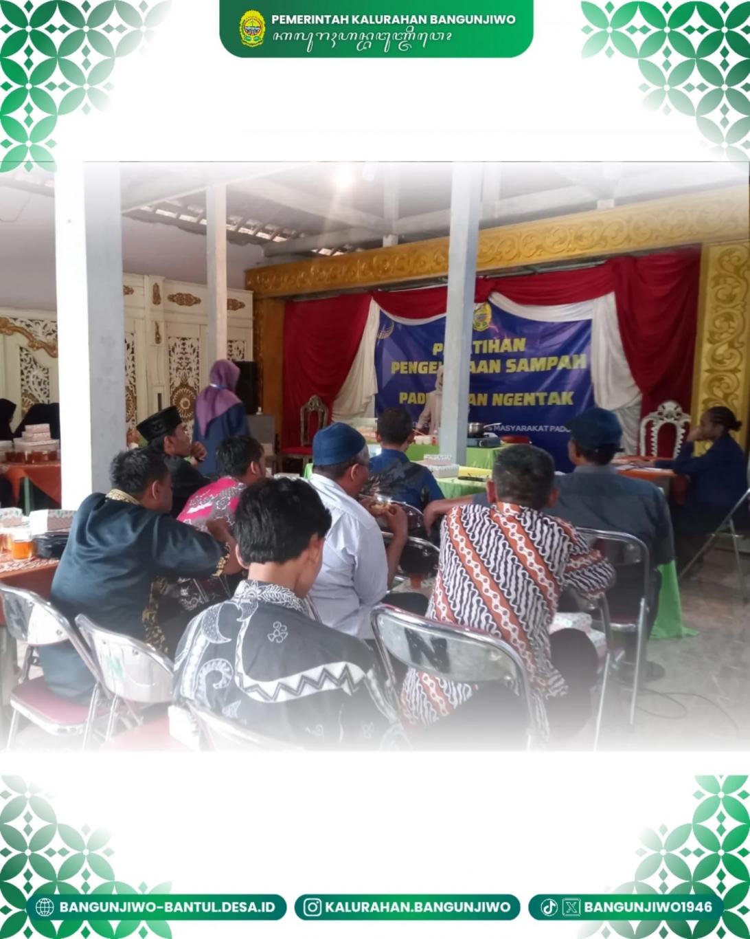 Minggu 03/08 Pemerintah Kalurahan Bangunjiwo melaksanakan Pelatihan Pengelolaan Sampah Rumah Tangga di Padukuhan II Ngentak Program PPBMP TA 2025. Pelatihan pengelolaan sampah rumah tangga adalah kegiatan yang memberikan pengetahuan dan keterampilan kepada masyarakat untuk mengelola sampah dari rumah tangga secara efektif dan berkelanjutan. Tujuannya adalah untuk mengurangi dampak negatif sampah terhadap lingkungan, serta mengubah sampah menjadi sumber daya yang bermanfaat.