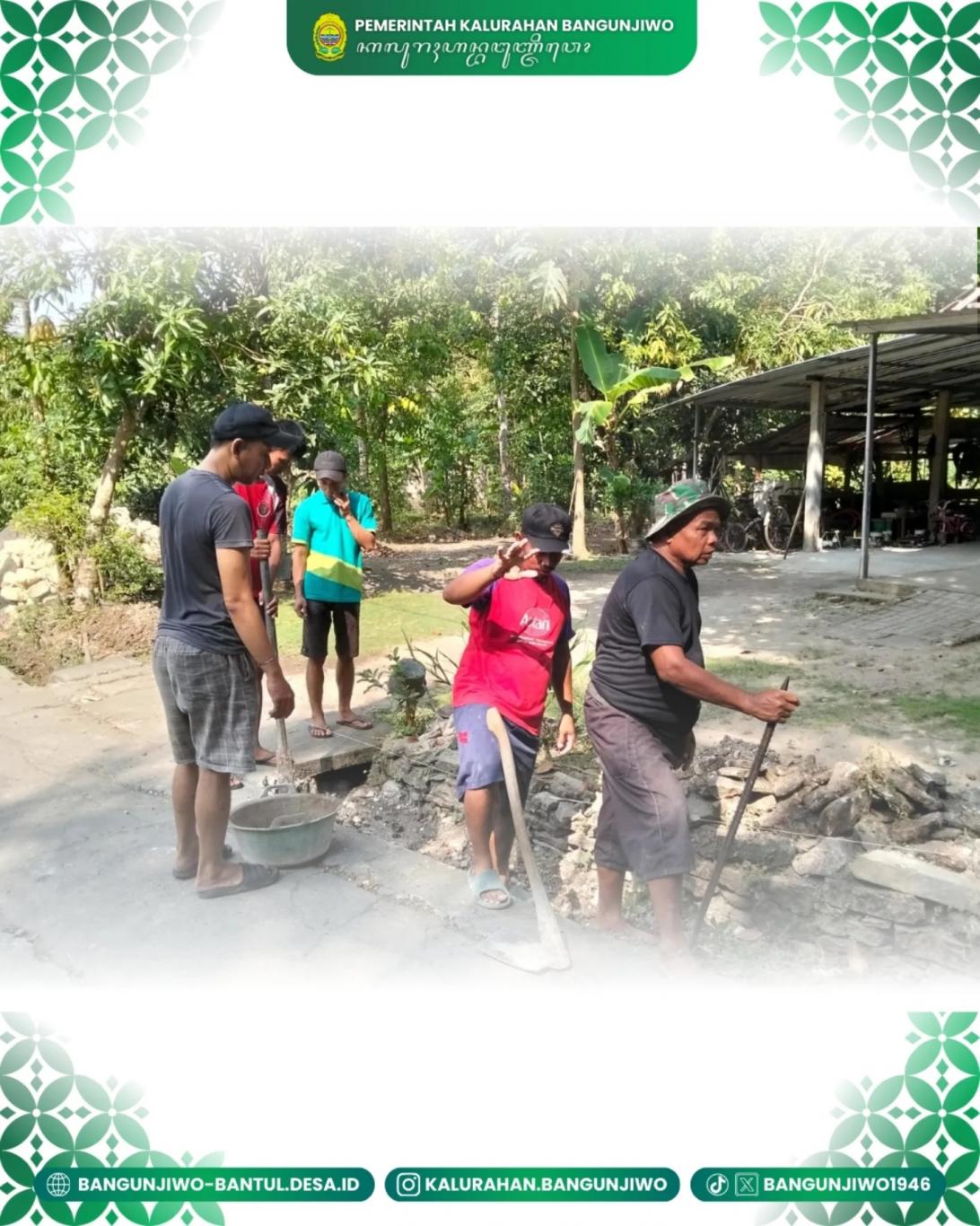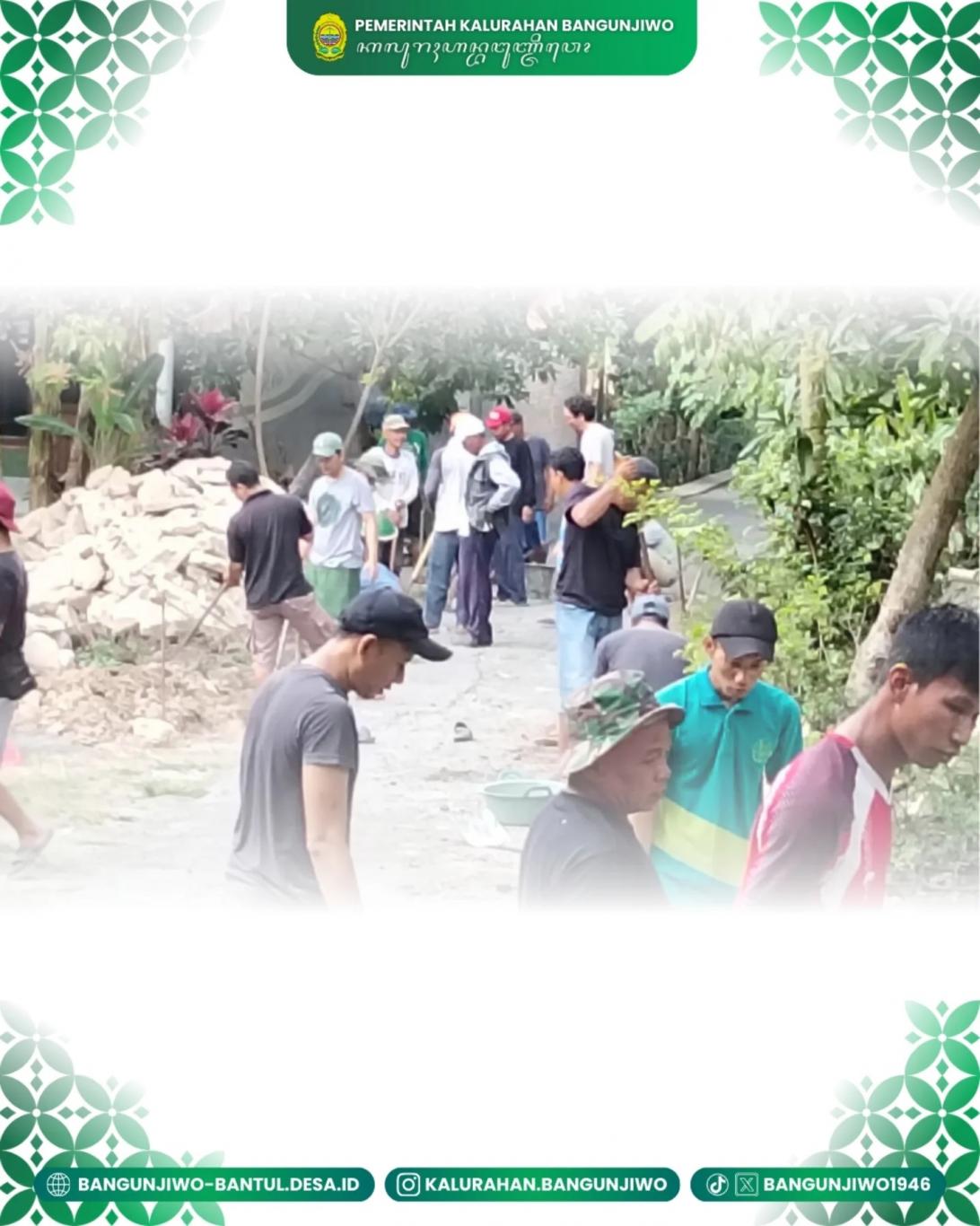 Minggu 10/08 Pemerintah Kalurahan Bangunjiwo melalui TPK di bulan Agustus ini mulai melaksanakan kegiatan pembangunan infrastruktur melalui program BKK TA 2025. Salahsatunya adalah pembangunan talud jalan di Padukuhan Donotirto RT 06. Kegiatan ini merupakan program Bantuan Keuangan Khusus (BKK) TA 2025. Pembangunan corblok jalan merupakan upaya pemerintah dan masyarakat untuk meningkatkan kesejahteraan melalui perbaikan infrastruktur jalan. Dengan jalan yang lebih baik, diharapkan aktivitas ekonomi dan sosial masyarakat dapat berjalan lebih lancar.