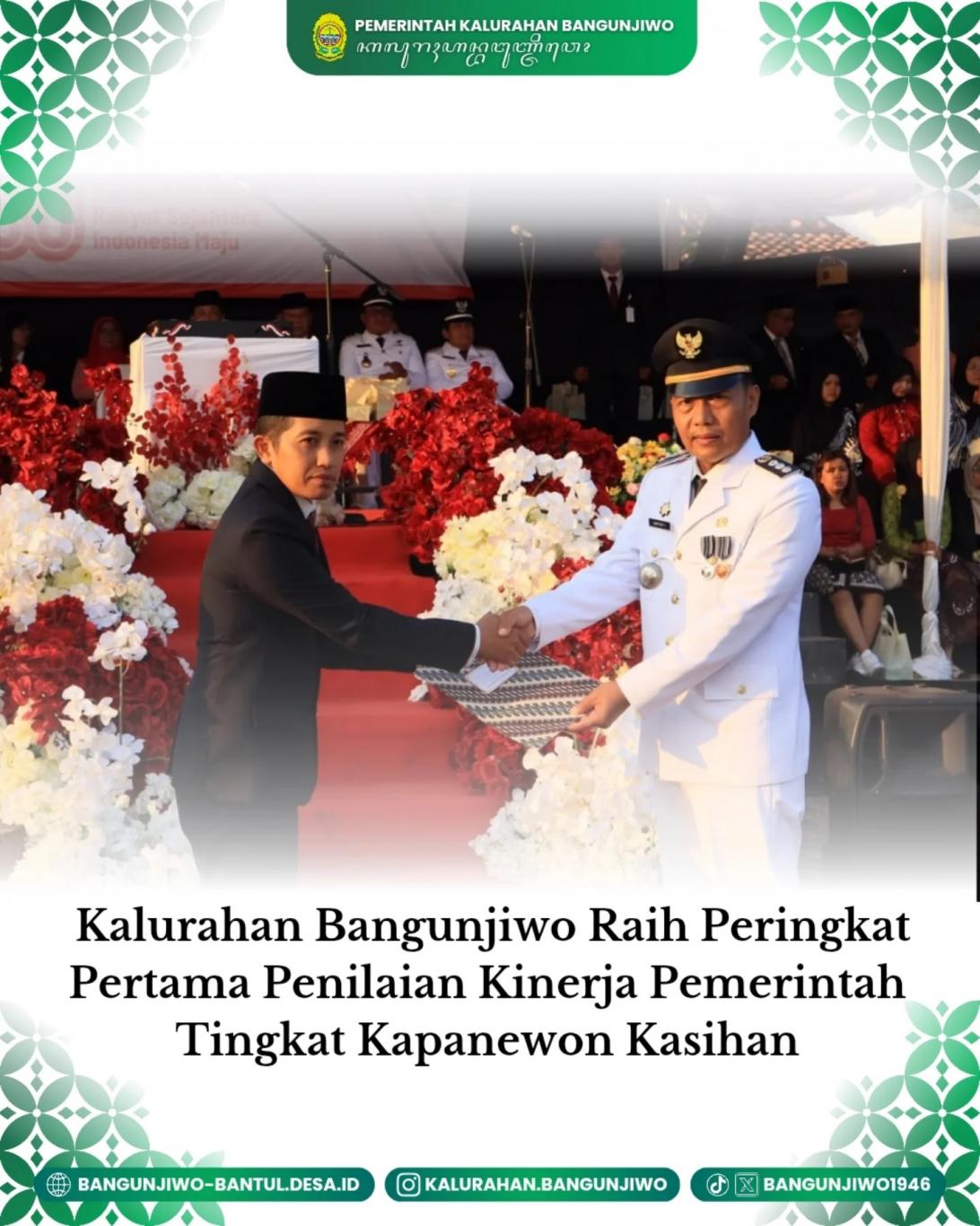 Kalurahan Bangunjiwo berhasil meraih Peringkat Pertama Penilaian Kinerja Pemerintah Kalurahan se-Kapanewon Kasihan.