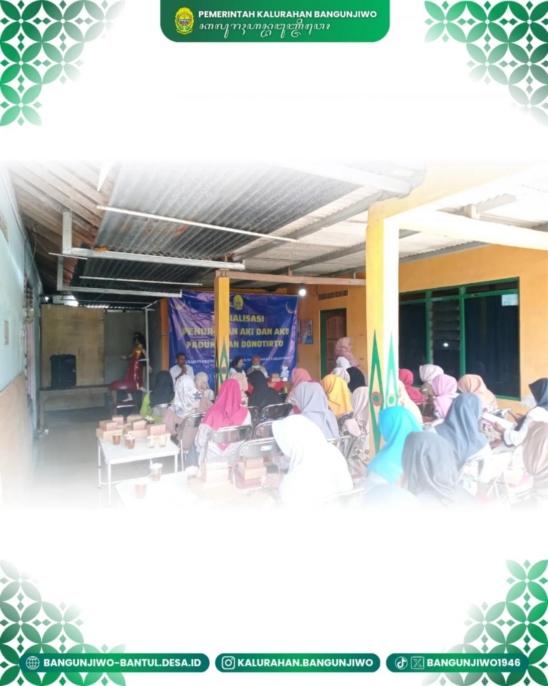 Rabu 20/08 Padukuhan Donotirto Kalurahan Bangunjiwo melaksanakan kegiatan Sosialisasi penurunan Angka Kematian Ibu (AKI) dan Angka Kematian Bayi (AKB). Kegiatan ini merupakan program PPBMP TA 2025 sebagai upaya untuk meningkatkan kesadaran dan pengetahuan masyarakat serta petugas kesehatan mengenai pentingnya mencegah kematian ibu dan bayi. Sosialisasi ini bertujuan untuk memberikan informasi, edukasi, dan keterampilan terkait perawatan ibu hamil, bersalin, nifas, serta perawatan bayi baru lahir.
