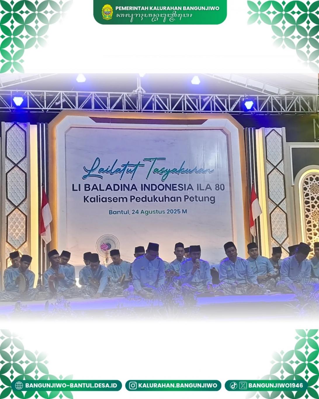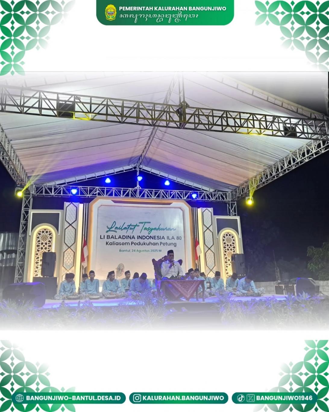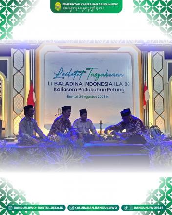 Minggu malam 24/08 Lurah Bangunjiwo Bapak H. Parja, S.T.,M.Si. menghadiri acara Pengajian Lailatur Tasyakuran Li Badalina Indonesia Ila 80 Tahun 2025 di Masjid Rohmatulloh Kaliasem Petung Bangunjiwo.