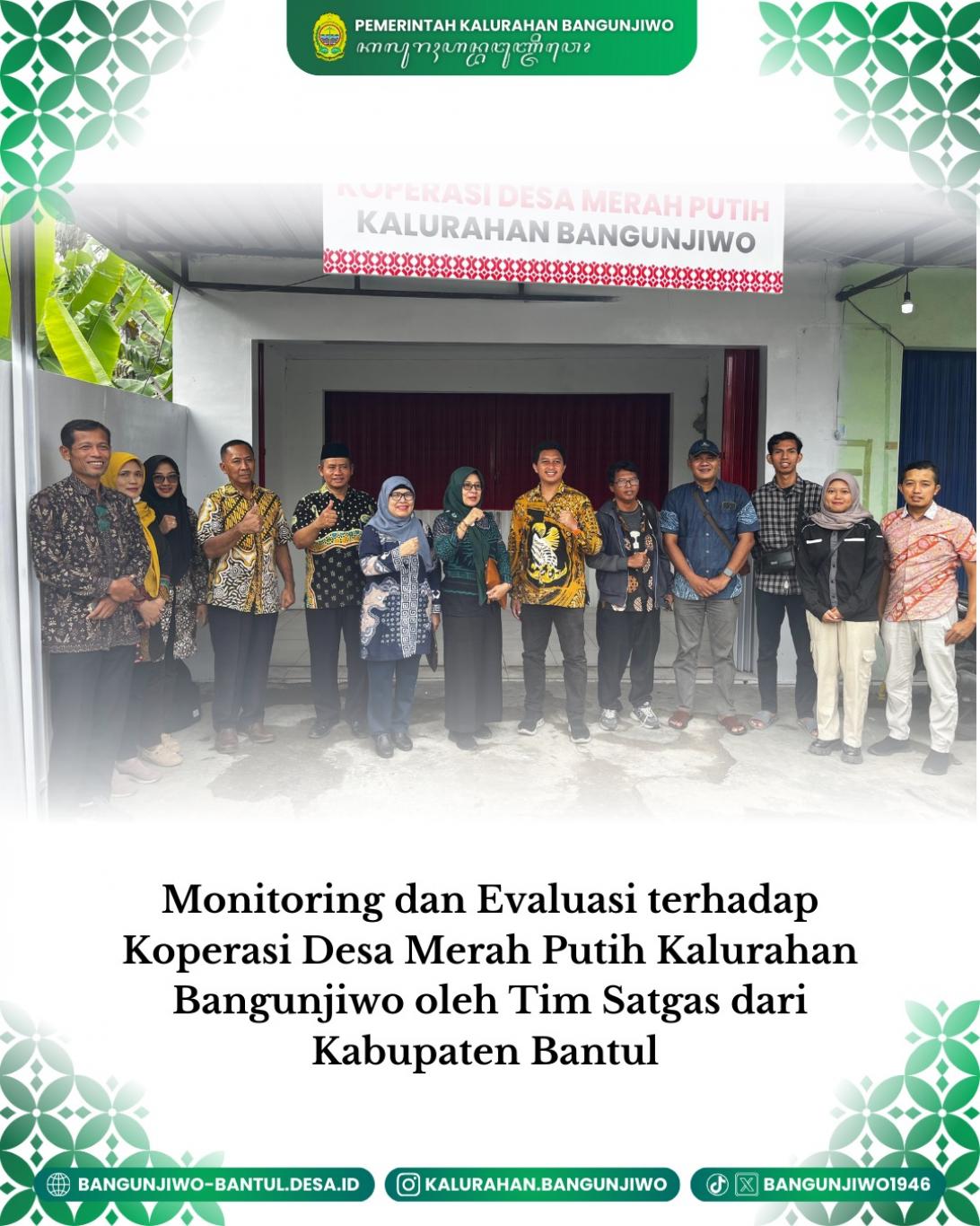 Tim Satgas dari Kabupaten Bantul melakukan Monitoring dan Evaluasi terhadap Koperasi Desa Merah Putih Kalurahan Bangunjiwo pada hari Kamis (09/11/2025). Kegiatan ini bertujuan untuk memantau sejauh mana progres pembangunan serta mengevaluasi kondisi kantor dan kios milik Bangunjiwo. Dengan adanya evaluasi ini, diharapkan dapat memberikan gambaran yang lebih jelas tentang kebutuhan dan potensi yang perlu ditingkatkan agar koperasi bisa lebih optimal dalam menjalankan fungsinya untuk kesejahteraan masyarakat. Tim satgas juga memastikan bahwa semua rencana berjalan dengan baik dan sesuai dengan harapan, sehingga kedepannya Koperasi Desa Merah Putih dapat menjadi motor penggerak ekonomi lokal yang lebih mandiri dan berkembang.
