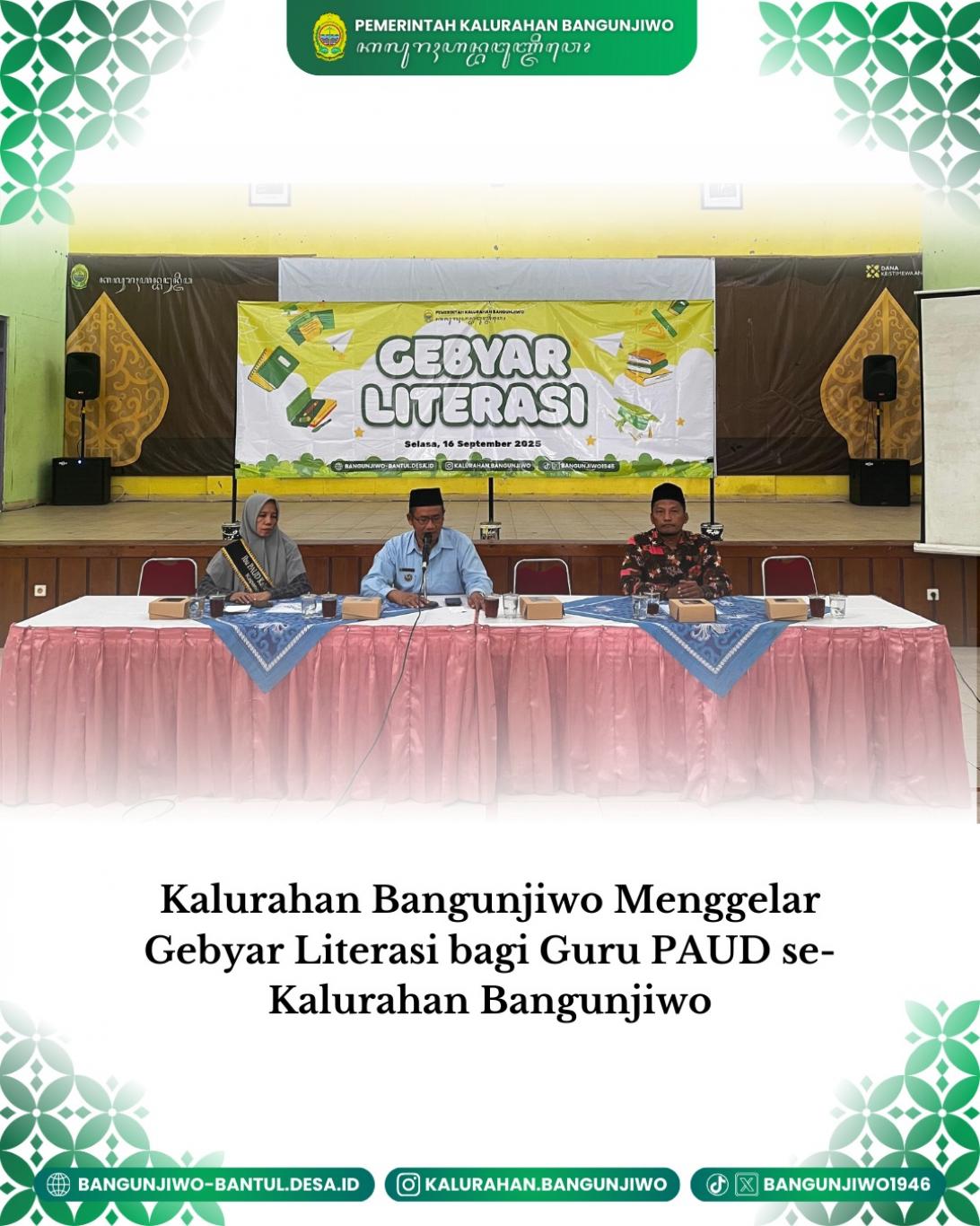 Bangunjiwo, 16 September 2025 — Pemerintah Kalurahan Bangunjiwo menggelar Gebyar Literasi yang ditujukan khusus bagi para guru Pendidikan Anak Usia Dini (PAUD) se-Kalurahan Bangunjiwo. Kegiatan ini merupakan bagian dari upaya meningkatkan kapasitas pendidik dalam menumbuhkan budaya literasi sejak usia dini.
