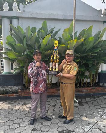 Ketua KONI Kalurahan Bangunjiwo menyerahkan Piala Kejuaraan Bola Voli “Piala Kepala Dispertaru Cup” kepada Pemerintah Kalurahan Bangunjiwo sebagai bentuk apresiasi atas prestasi yang diraih tim bola voli Bangunjiwo yang berhasil meraih Juara 2 dalam ajang tersebut.