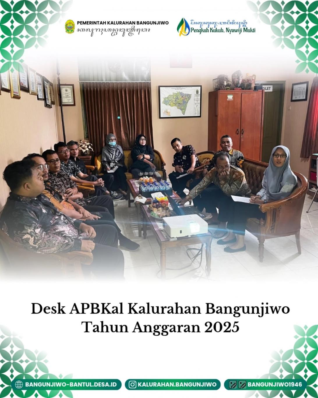 Desk diikuti oleh Lurah Bangunjiwo, Carik serta Kasi/Kaur selaku Pelaksana Kegiatan APBKal TA 2025.