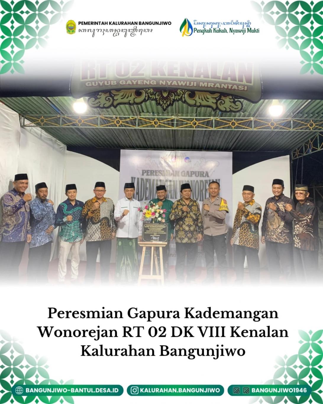 Komentar atas Lurah Bangunjiwo resmikan Gapura Kademangan Wonorejan DK Kenalan RT 02