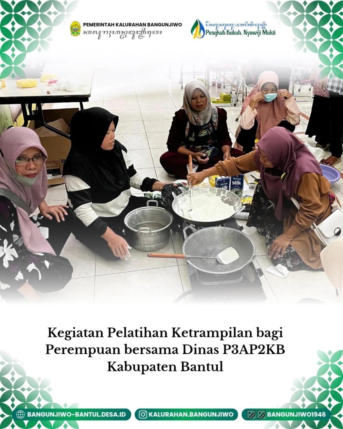 Selasa 18/11 Kalurahan Bangunjiwo menjadi tempat penyelenggaraan Kegiatan Pelatihan Ketrampilan bagi Perempuan. Kegiatan ini merupakan program dari Dinas Pemberdayaan Perempuan Perlindungan Anak Pengendalian Penduduk dan KB Kabupaten Bantul dlaam rangka untuk pemberdayaan perempuan korban kekerasan maupun perempuan rentan masalah sosial ekonomi. Acara dibuka oleh Kabid Pemberdayaan dan Perlindungan Perempuan DP3AP2KB Kabupaten Bantul Ibu Kartika Cahyani, SH.,M.Hum. dan dihadiri oleh Panewu Anom Kapanewon Kasihan, Carik Bangunjiwo serta peserta pelatihan dari 4 kalurahan seKapanewon Kasihan.
