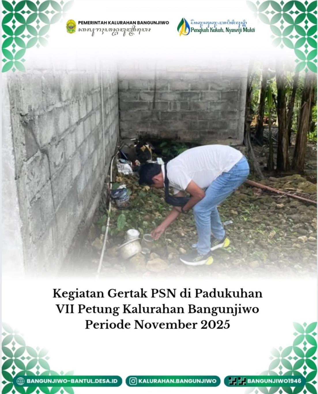 Jumat 21/11 Pemerintah Kalurahan Bangunjiwo melaksanakan kegiatan Gertak PSN periode 2 di bulan November 2025. Kegiatan ini dilaksanakan secara serentak oleh seluruh kalurahan di Kapanewon Kasihan.