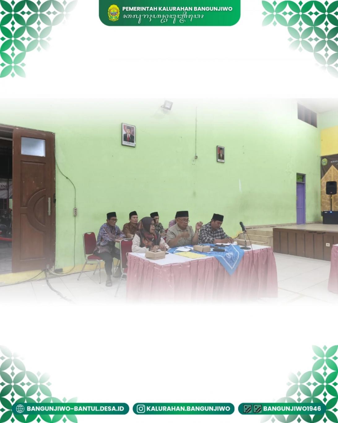 Hadir dalam rapat tersebut Lurah Bangunjiwo, Carik, jajaran pamong kalurahan, Bamuskal Bangunjiwo, serta perwakilan Lembaga Kemasyarakatan Kalurahan Bangunjiwo.