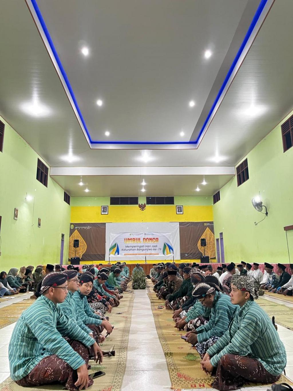Umbul Donga dalam rangka memperingati Hari Jadi Kalurahan Bangunjiwo ke-79 diselenggarakan pada Jumat malam, 5 Desember 2025, bertempat di Gedung Sastro Soekarno Kalurahan Bangunjiwo. Kegiatan ini dihadiri oleh Panewu Kasihan beserta jajaran, Lurah Bangunjiwo beserta jajaran Pamong Kalurahan, Bamuskal, mantan Pamong Kalurahan Bangunjiwo, Babinsa dan Bhabinkamtibmas, Kaum Rois se-Kalurahan Bangunjiwo, serta lembaga kemasyarakatan kalurahan.