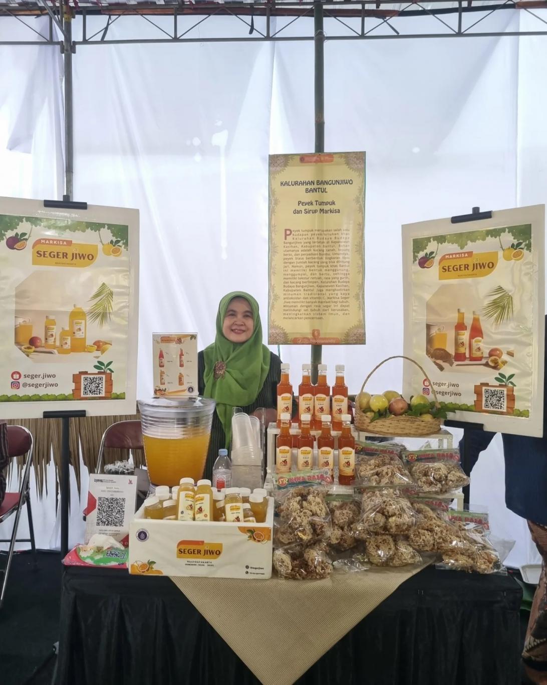 Produk UMKM Kalurahan Bangunjiwo yanv mengikuti kegiatan ini diantaranya peyek tumpuk, produk minuman seger jiwo serta kerajinan kipas bambu.