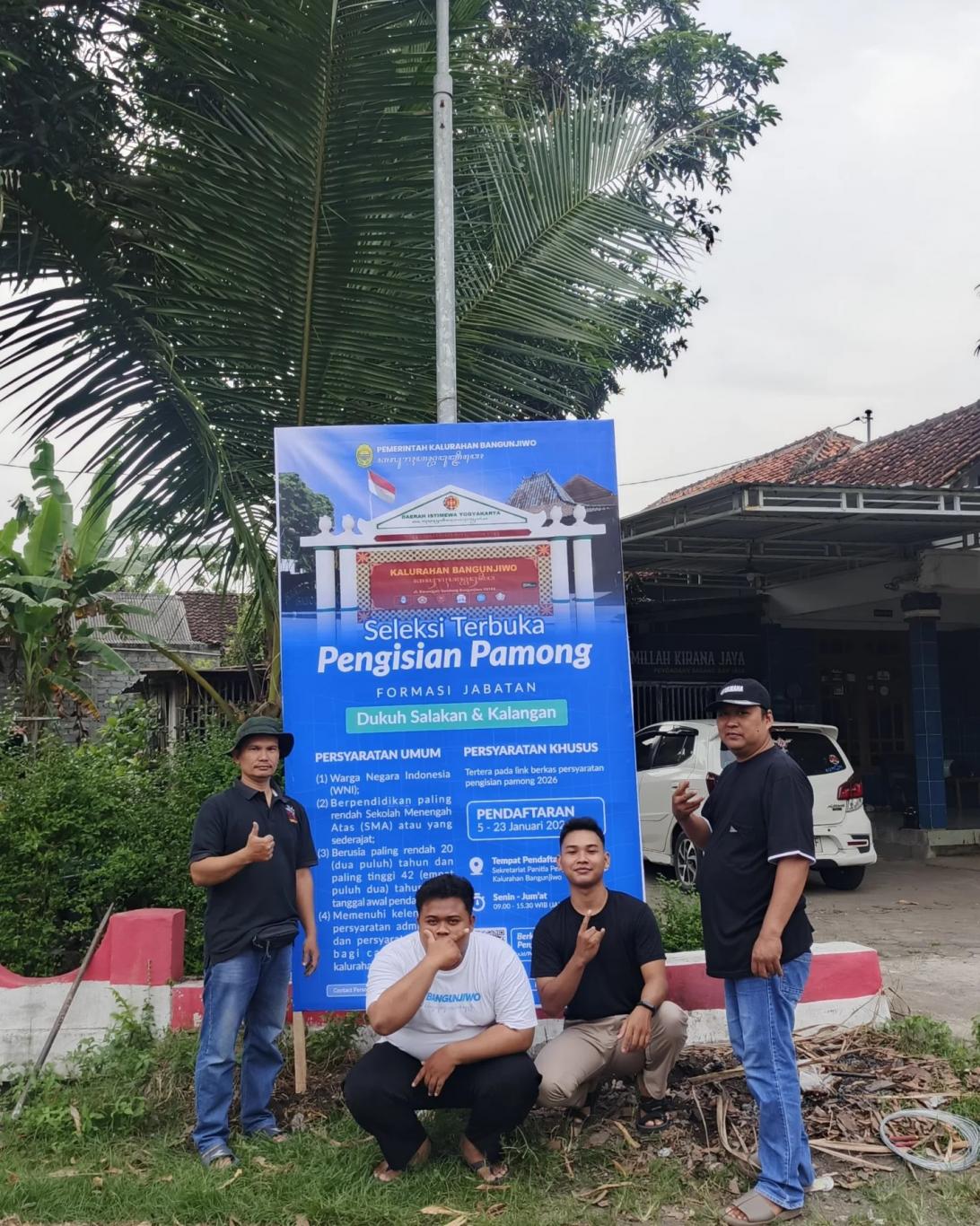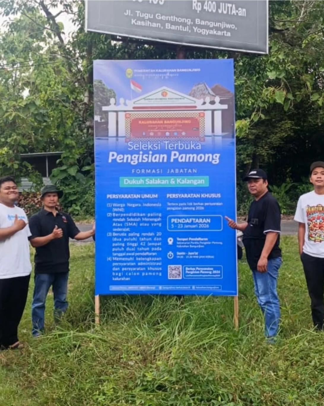 Tahapan saat ini adalah pengumuman terkait lowongan pamong kalurahan secara terbuka melalui media sosial kalurahan, website, maupun pemasangan baliho di beberapa titik strategis kalurahan.