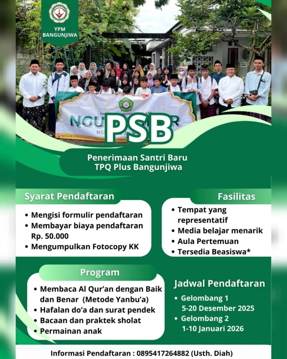 - Informasi Penerimaan Santri Baru TPQ PLus Bangunjiwo