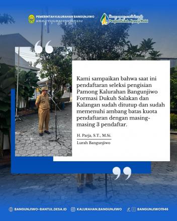 - Pengumuman Penutupan Pendaftaran Lowongan Pamong Kalurahan Bangunjiwo