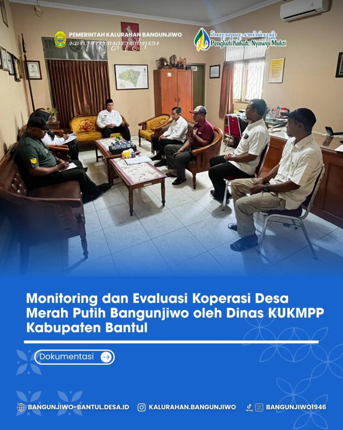 Tim Monev diterima di Ruang Kerja Lurah Bangunjiwo dihadiri Lurah Bangunjiwo, Carik, Babinsa serta Pengurus KDMP Bangunjiwo.
