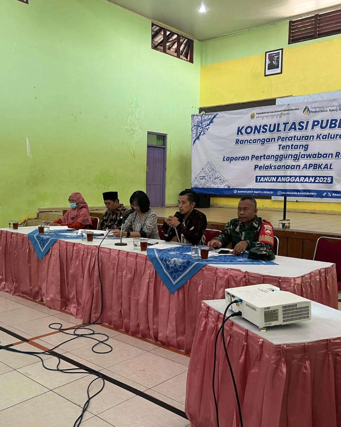 Kamis [29/1] Pemerintah Kalurahan Bangunjiwo menyelenggarakan kegiatan Konsultasi Publik Rancangan Peraturan Kalurahan tentang Laporan Pertanggungjawaban Realisasi APBKal TA 2025. Acara berlangsung di Gedung Sastro Soekarno Kalurahan Bangunjiwo dihadiri Panewu Anom Kasihan, Kepala Jawatan Praja, Babinsa, Pendamping Desa, Ketua Bamuskal beserta anggota, Carik beserta pamong kalurahan dan perwakilan lembaga kemasyarakatan kalurahan.