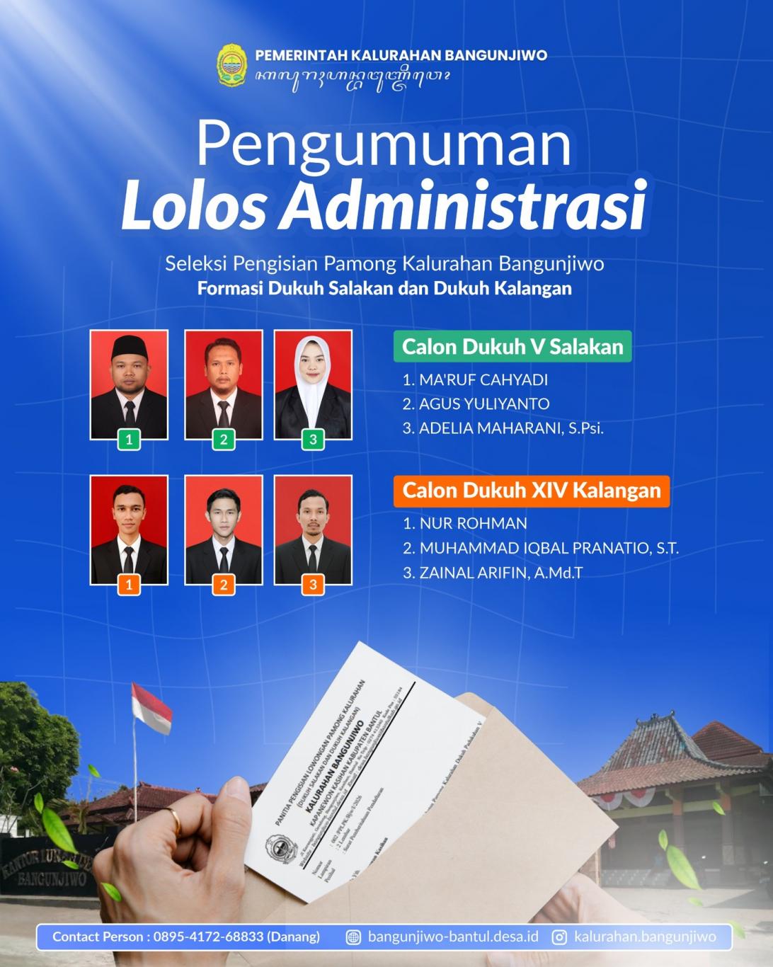PENGUMUMAN LOLOS ADMINISTRASI SELEKSI PAMONG KALURAHAN JABATAN DUKUH SALAKAN & DUKUH KALANGAN