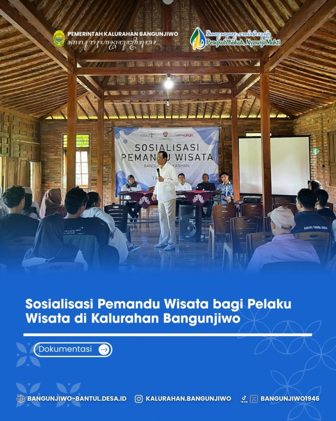 Dinas Pariwisata Daerah Istimewa Yogyakarta bekerja sama dengan Pemerintah Kalurahan Bangunjiwo menyelenggarakan kegiatan Sosialisasi Pemandu Wisata bagi para pelaku wisata sebagai upaya peningkatan kapasitas sumber daya manusia di sektor pariwisata.