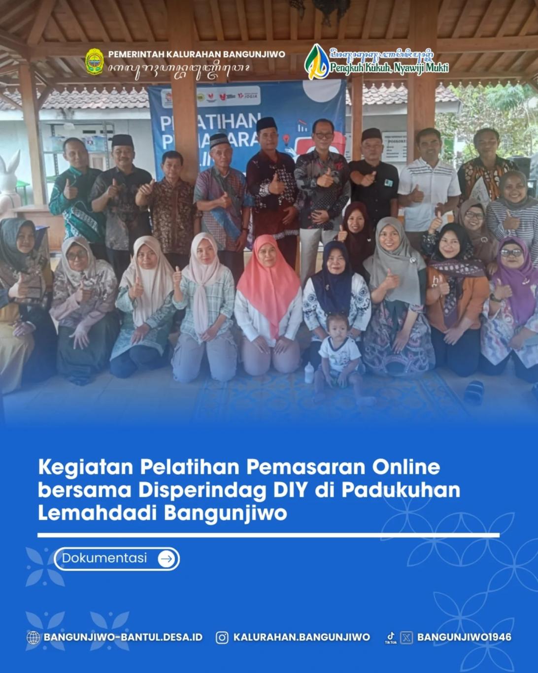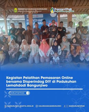 Bertempat di Joglo Edisutan diselenggarakan kegiatan Pelatihan Pemasaran Online bagi warga Padukuhan Lemahdadi Bangunjiwo. Pelatihan pemasaran online yang diselenggarakan oleh Disperindag (Dinas Perindustrian dan Perdagangan) DIY yang bekerjasama dengan anggota DPRD DIY Dr. Danang Wahyu Broto, SE.,M.Si. Kegiatan bertujuan untuk meningkatkan kompetensi digital pelaku UMKM, IKM, dan pedagang pasar tradisional agar mampu bersaing di era digital. Materi meliputi strategi digital marketing, penggunaan media sosial, manajemen e-commerce, konten kreatif, hingga pemanfaatan AI untuk pemasaran produk.