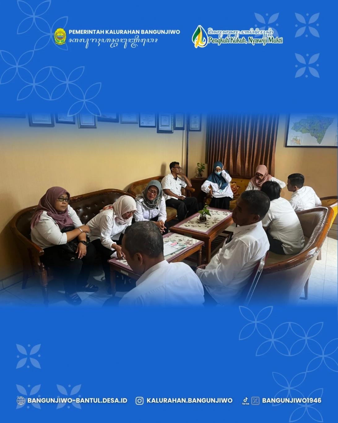 Rabu 4/3 Pemerintah Kalurahan Bangunjiwo menerima Tim Monev (Monitoring dan Evaluasi) Reformasi Kalurahan Kapanewon Kasihan. Kegiatan berlangsung di Ruang Lurah Bangunjiwo dihadiri oleh Carik, Kasi Kaur Kalurahan Bangunjiwo.
