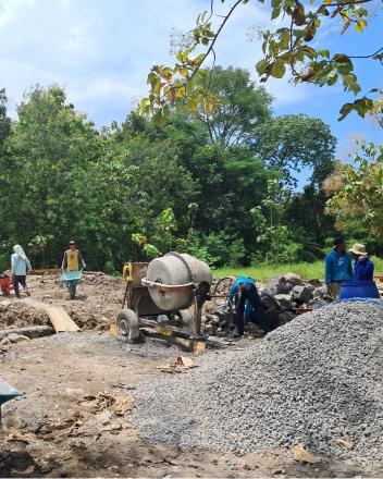 Saat ini pembangunan gedung dan gerai KDMP Bangunjiwo sudah berproses dengan pemasangan pondasi, ditargetkan bulan Mei pembangunan selesai.