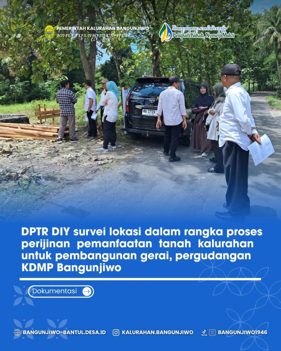 Rabu 11/3 Pemerintah Kaluahan Bangunjiwo mendampingi Tim DPTR DIY dalam kegiatan survei lokasi pembangunan Gudang, Gerai dan Perlengkapan KDMP Kalurahan Bangunjiwo.