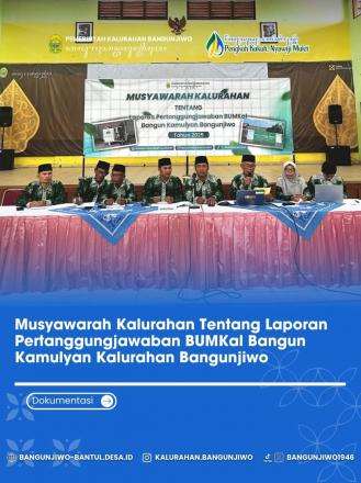 Musyawarah Kalurahan tentang Laporan Pertanggungjawaban BUMKal Bangun Kamulyan Kalurahan Bangunjiwo telah dilaksanakan pada hari ini, 17 Maret 2026, bertempat di Gedung Serbaguna Sastro Soekarno Kalurahan Bangunjiwo.